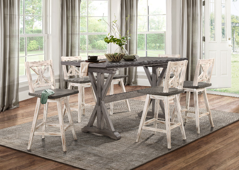 Amherst white counter height table with the warm look of the cottage white beautifully accenting the stylish cottage design, the amherst counter height dining collection creates an inviting cottage retreat within the decor of any dining room. Benzara wooden counter height chair with overlapped design back and scoop seat, white and brown, set of two. Chairs can be very difficult to build just right because cutting back legs requires precision and often special tools. Table & six chairs ?counter height ?16 extension leaf ?two tone finish ?wire brush, gray finish on table top and seat ?white finish on table base the picket house furnishings 7pc counter height dining set is the missing piece to your home! Find great deals on ebay for counter height chairs.