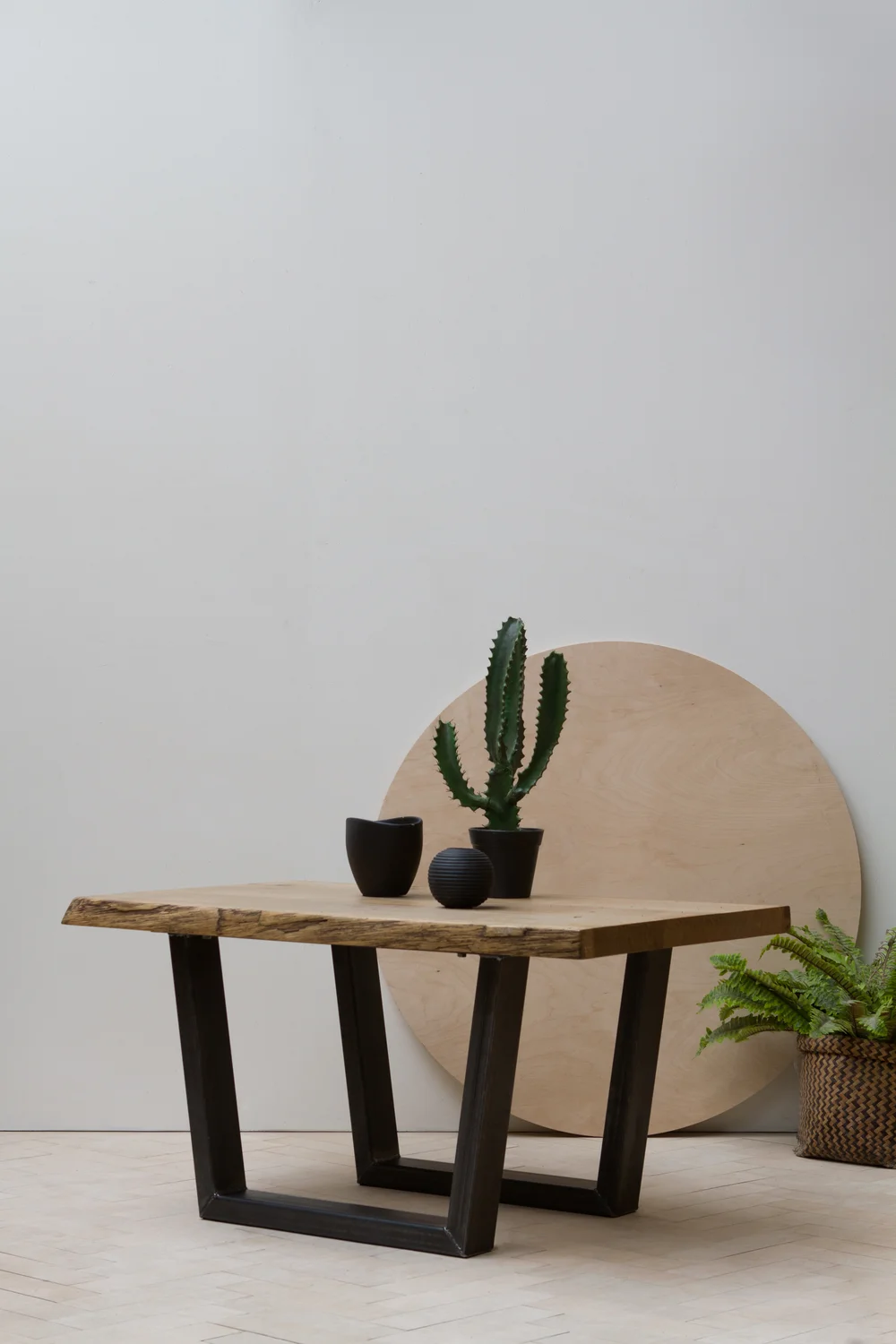 The industrial metal leg will hold a big, slab tabletop and a lot of weight.